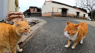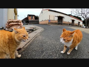 【猫の喧嘩】遠くから威嚇しあう野良猫