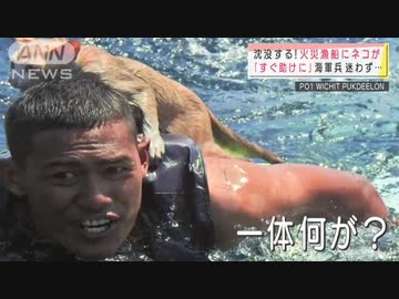 海軍隊員が決死の救助 沈没寸前の船にネコが・・・