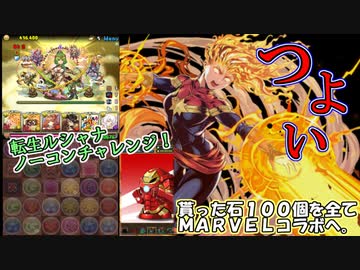 【パズドラ】完全自分用の転生ルシャナ攻略動画とおまけのMARVELコラボ追いガチャ【実況】