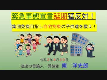 ① 緊急事態宣言延期に猛反対、集団免疫で早く普通の生活を!