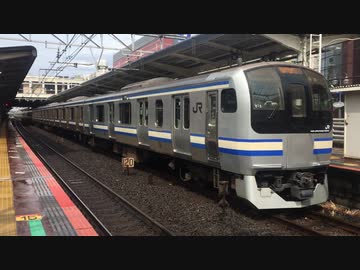 【曇り】E217系Y-1編成+Y-119編成 回送 津田沼駅2番線発車~幕張車両センター入庫