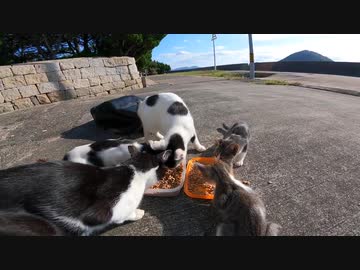 【野良子猫】猫島に行ったら仔猫と母猫に猫語で話しかけられたのでご飯をたべさせた