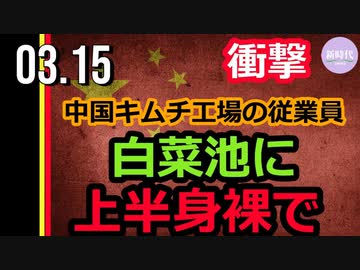 【閲覧注意】中国キムチ工場で、上半身裸の男性が白菜池で作業