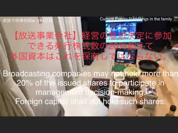 家族で時事放談w 194日目 放送事業会社は議決権ベースで20%超の外国資本うけいれてはならない。 東北新社