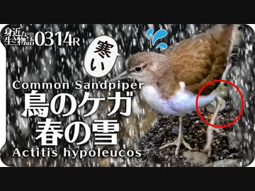 0314R【怪我した鳥を春の雪が襲う】雪と野鳥。カルガモが道路を横断。ヒドリガモが妻を守る。エナガにメジロ、雪と桜 鶴見川水系恩田川の野鳥 #身近な生き物語 #春の雪 #雪