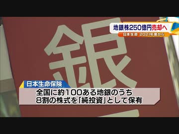 地銀株250億円売却へ 日本生命 2021年度から