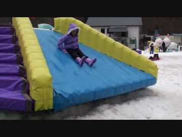 【GRANSNOW奥伊吹】ふわふわ遊具のすべり台、トランポリンで遊ぶあい❤着地に失敗しましたwww