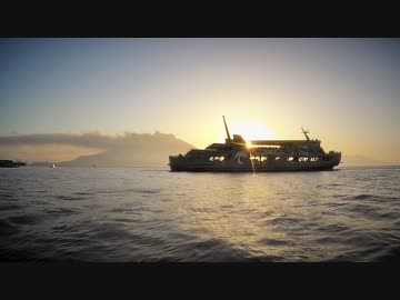 ある日の桜島(その264)<3月下旬,鴨池港の日の出を早送りで>