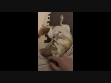 飼い主の膝から転げ落ちるフェネック