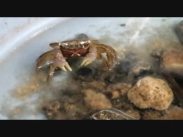 エサくれ合図をするくらい空腹だがなぜか食べないクロベンケイガニ