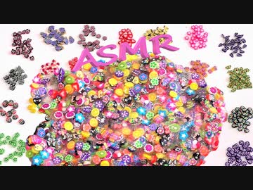 「音フェチ」ASMR!バイノーラル録音!可愛い絵柄♥ネールデコ樹脂粘土にスライムを混ぜてみた♪立体音響!作業用BGM
