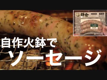自作火鉢でソーセージ焼いてみました-レモン風味とパセリのあらびきソーセージ-