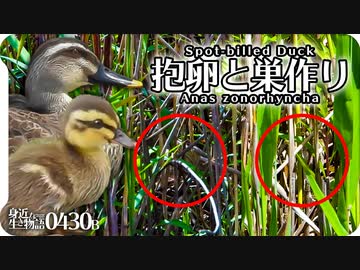 0430B【カルガモ抱卵と巣作り】親子の子育てモズ雛鳥。猛禽類ツミ。雀 目白 鶺鴒の捕食。カルガモ親子から一年…今年はどうだ? 鶴見川水系恩田川の野鳥 #身近な生き物語 #カルガモ #モズ