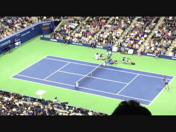 【全米オープンテニス】 デルポトロのサーブをかなり下がったポジションでリターンするナダル
