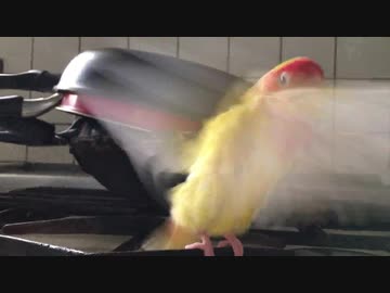 水浴び後 つかまりながら羽ばたく#コザクラインコ