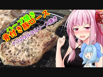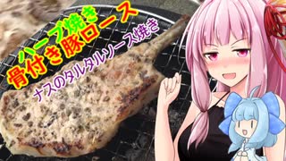 【茜ちゃん七輪飲み】骨付き豚ロースのハーブ焼き ナスのタルタルソース焼き