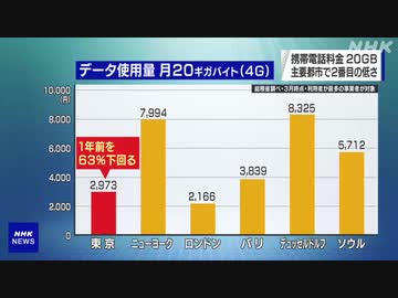 携帯電話料金 20GB 世界の主要6都市で東京は2番目の低水準