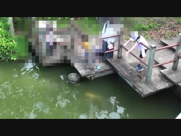 【公園】コイのエサやりをするあい❤たいこ橋を渡りますwww