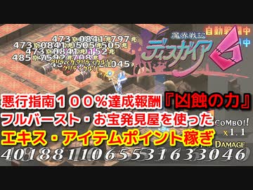 魔界戦記ディスガイア6 悪行指南100%達成報酬『凶蝕の力』・フルバースト・お宝発見屋を使ったエキス・アイテムポイント・ヘル・撃破数稼ぎ