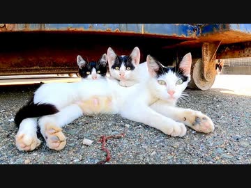 野良猫親子が寛いでいるところにお邪魔してきました