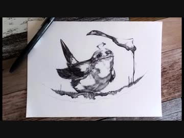 鳥 - その5 - 【ボールペン画メイキング】- Ballpoint pen drawing -
