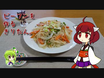 ビーフンを作るきりたん。