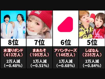 【文春】YouTuber飲み会参加者の登録者減少率ランキング