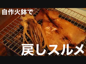自作火鉢で戻しスルメ焼いてみました。