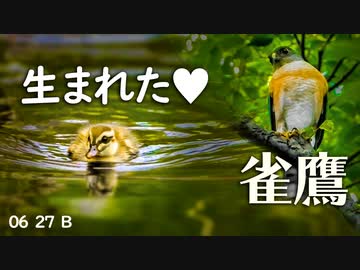 0627B【カルガモ親子 餌やり悲劇/雛鳥生まれた】猛禽類タカ科ツミ。バンの雛鳥自力で捕食。野鳥に餌をあげないで。 鶴見川水系恩田川でコンデジ野鳥撮影 #身近な生き物語 #カルガモ親子 #ツミ