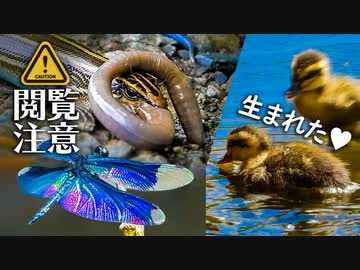 0715B【トカゲの捕食で食べられる蚯蚓】カルガモ親子の雛鳥生まれた。カワセミの兄弟喧嘩。ヒガシニホントカゲとミミズ。 チョウトンボ。バンの幼鳥。 #身近な生き物語 #カルガモ親子 #トカゲ