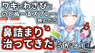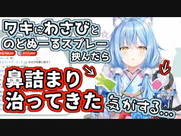 脇にわさびとのどぬーるスプレーを挟んで鼻詰まりを治すラミィ
