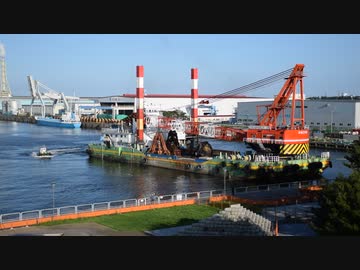 仙台港 第六十八ひなた号 全旋回式起重機船兼グラブ浚渫船の接岸