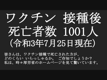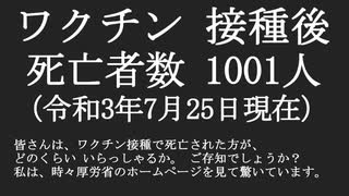 ワクチン接種後 死亡者数1001人 死亡保障事例ぼぼ無し ご存知ですか?