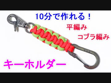 【鍵を取り付けられる】パラコードでキーホルダーの編み方!2色の平編み(コブラ編み)