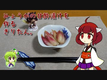 みょうがの甘酢漬けを作るきりたん。