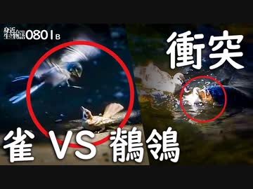 0801B【カルガモ親子 雛を守る戦い】スズメVSセキレイ。キジバトの巣作り。黄色いクチバシの交雑マルガモ。餌やりで置き去りの雛鳥。 #身近な生き物語 #カルガモ親子 #スズメ