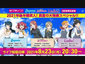 2021/08/23(月) ラブライブ!シリーズ Aqours・虹ヶ咲学園スクールアイドル同好会・Liella! 3校合同生放送 2021年後半戦突入!真夏の大発表スペシャル!!