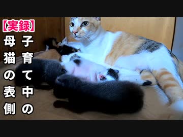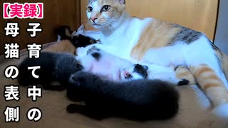 また赤ちゃんが母猫の下敷きに(映像は後半)飼主眠れず【生後8日目-1 五匹の子猫】