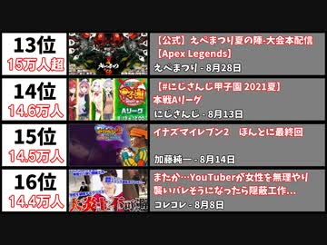 【2021年8月】最も同接数が多かった生配信20選【日本YouTube Live】