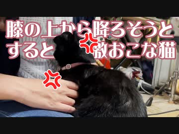 膝から降ろそうとすると激おこな猫