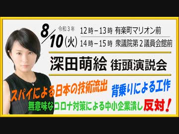 【復刻版】深田萌絵 街頭演説会 気温37度 有楽町マリオン前 ② スパイ防止法 背乗り防止法を早く制定せよ!2021/8/10 12時〜