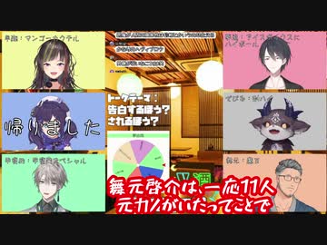酒の肴になる話でういはの置き土産の質問に翻弄されつつも舞元がモテてた話で盛り上がる5人