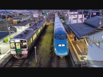 奥羽本線 庭坂駅に停車する回送とれいゆつばさ 庭坂駅を発車する普通列車