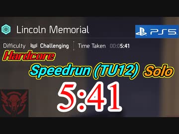 【Hardcore】Division2 5:41(リンカーン記念堂)[チャレンジ1人]TU12/PS5