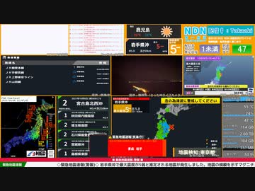 【緊急地震速報(警報)】岩手県沖 最大震度5強