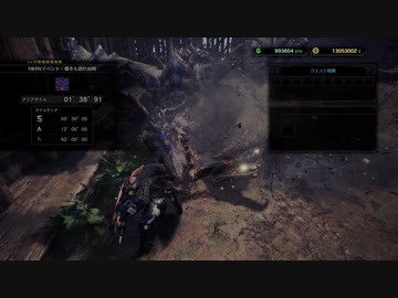 【MHWIB】闘技大会 チャレンジクエスト 傷をも恐れぬ時(傷ついたイャンガルルガ) ペア チャアク×チャアク 1'38"91