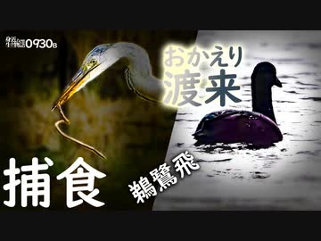 0930B【アオサギの捕食】カワウと共狩りウサギ飛び。食べられる大ミミズ。冬の渡り鳥が来た!コサギがエビ食べる。柿とムクドリ。マルガモ、カルガモ求愛行動。野鳥 #身近な生き物語 #アオサギ #オオバン