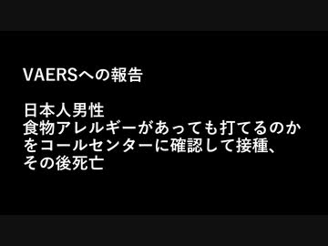 ■VAERSへの報告■ 日本人男性、食物アレルギーがあっても打てるのかコールセンターに確認後接種、 その後死亡