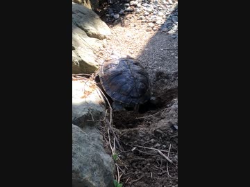 産卵のために穴を掘る亀