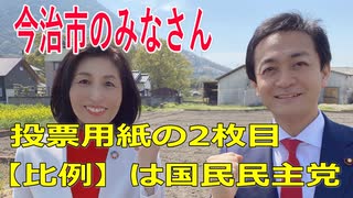 衆議院選挙2021・今治市の選挙区は「愛媛2区」比例四国・2枚目の投票用紙は「国民民主党」